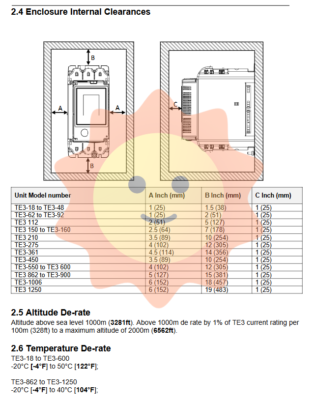 2.2 Installation spacing and derating requirements