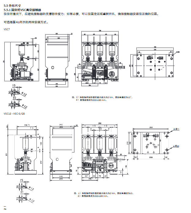Main circuit connection: The surface of copper or aluminum conductors must be silver plated, and the contact surface must be flat and clean. Tightening torque: M6=10Nm, M8=25Nm, M10=50Nm, M12=86Nm.