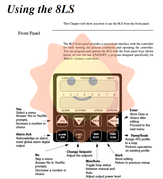 The Watlow Anafaze 8LS controller is a powerful 1/4 DIN size industrial grade controller designed specifically for complex process control. It provides 8 completely independent PID (Proportional Integral Derivative) control loops, which can directly connect various industrial sensors, including thermocouples (T/C), thermistors (RTD), and infrared non-contact sensors. This guide will provide a detailed overview of the technical specifications, mechanical installation, electrical wiring, programming settings, PID tuning, and troubleshooting methods of the 8LS controller, helping engineers and technicians quickly master the deployment and application of the equipment.
