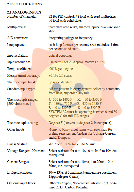 Precision measurement is achieved through specialized analog input modules. The System 32 typically utilizes Remote Resistance Analog Input Modules (RRAIM) or Solid State Analog Input Modules (SSAIM).