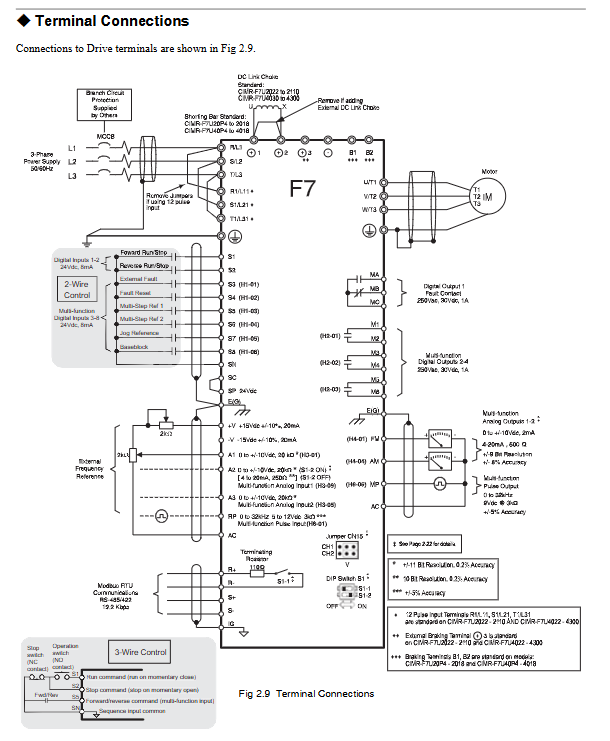 If 3-wire (pulse start stop) is required, set any multifunctional input (such as H1-05) to 0. At this time, S1 is the running pulse, S2 is the stopping pulse, and this input terminal is for direction switching.